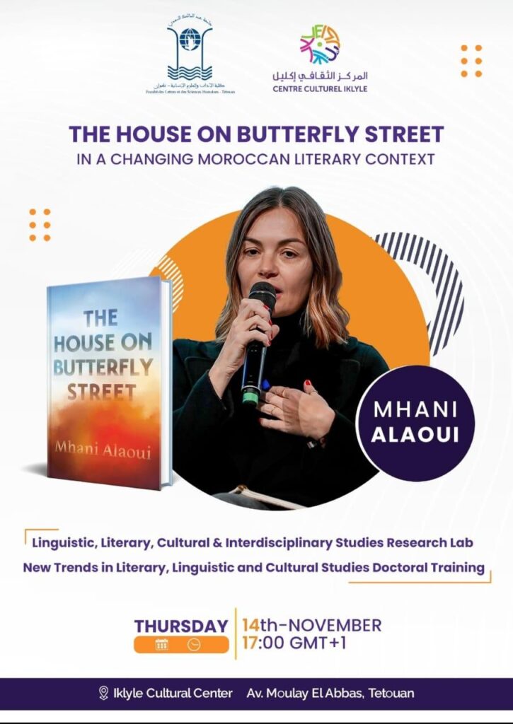 On Thursday, November 14, 2024, the Faculty of Letters and Humanities at Abdelmalek Essaâdi University, in collaboration with Centre Culturel Iklyle, hosted a literary talk featuring Moroccan author Mhani Alaoui. The event, titled “The House on Butterfly Street: In a Changing Moroccan Literary Context,” was organized by the Linguistic, Literary, Cultural & Interdisciplinary Studies Research Lab as part of the New Trends in Literary, Linguistic, and Cultural Studies Doctoral Training Program.